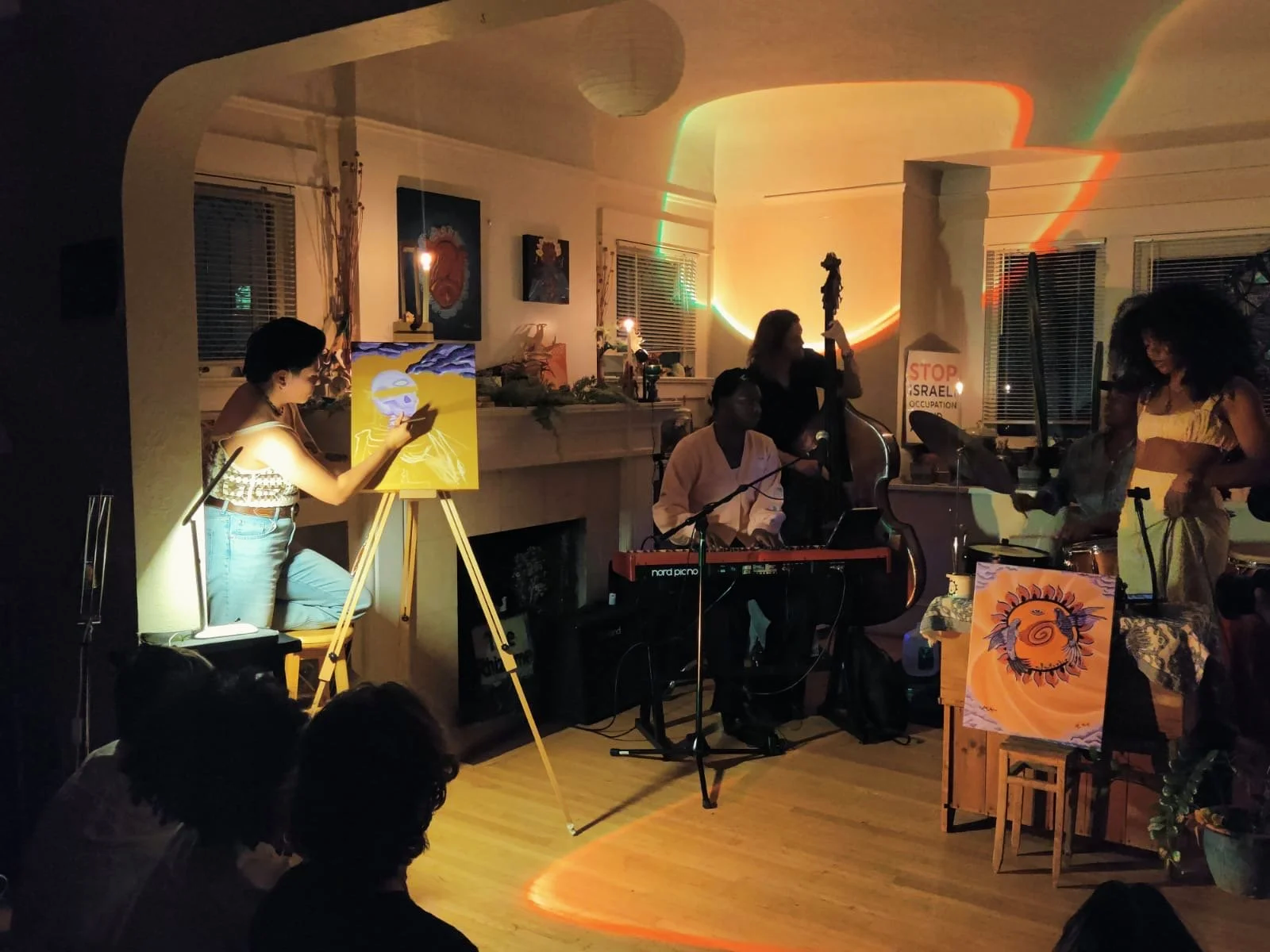 Watch the painting process happen in real time. I have live painted at album releases, live jazz events, and more.